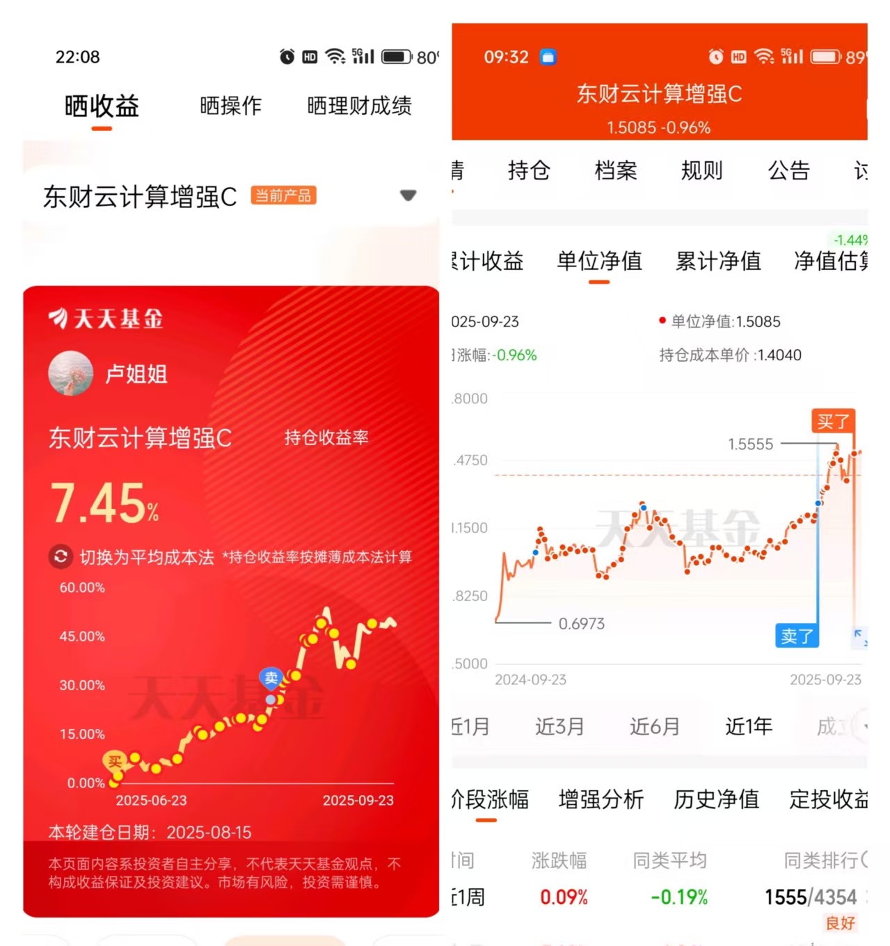 另外,我是东财基金家的铁粉,长期持有东财云计算C,一起携手跨越高山,走过草地,我已获得很好超额收益和投资体验,东财基金管理能力值得信赖。