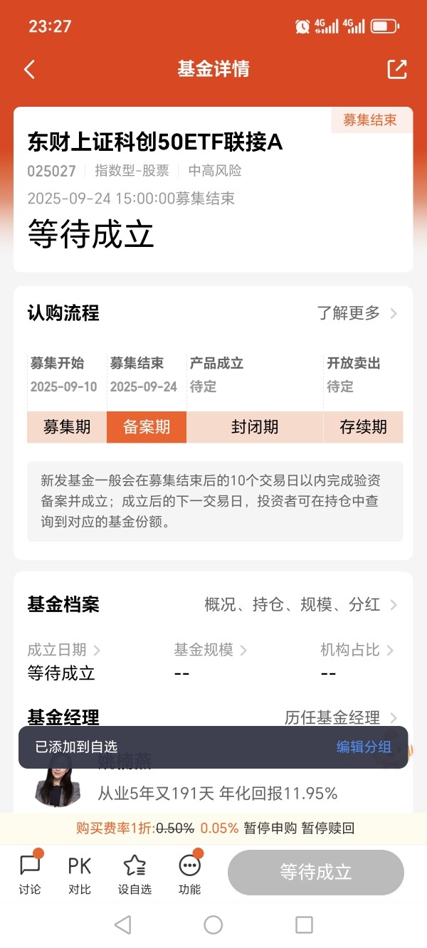 所以我把东财科创50ETF联接基金(A类:025027,C类:025028)加入到了我的基金自选池,因为东财基金是很多投资者心目中的投资理财好帮手。@东财基金