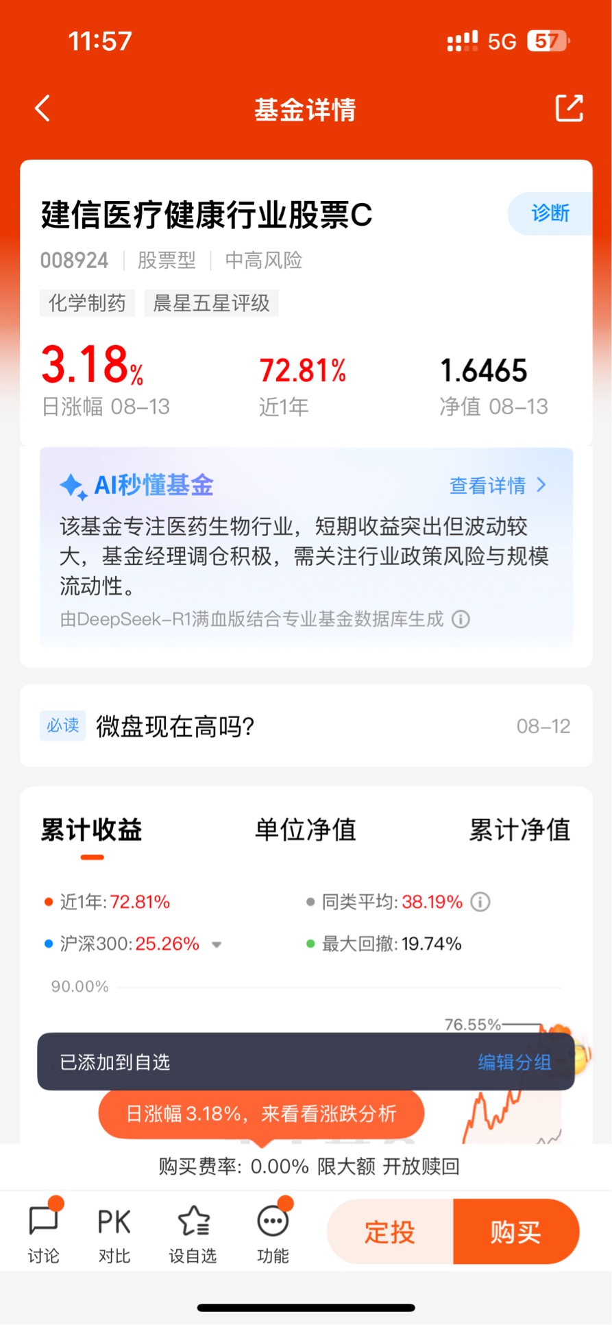 像创新药出海、国产高端器械这些领域,最近好消息不断,国产替代的步子越迈越大。虽然偶尔会有点波动,但想想这刚需+创新的双buff,长期肯定错不了,每次看到行业新突破都忍不住兴奋,这赛道未来可期啊!@建信基金