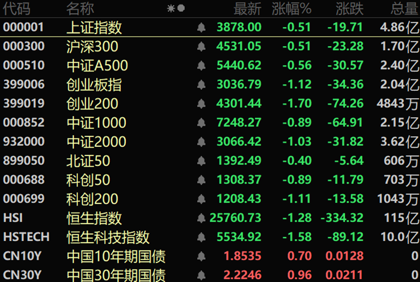 从板块来看,超硬材料概念表现活跃,煤炭板块走强,风电板块拉升,商业航天概念午后冲高。下跌方面,AI应用概念集体走弱,锂矿等板块跌幅居前。