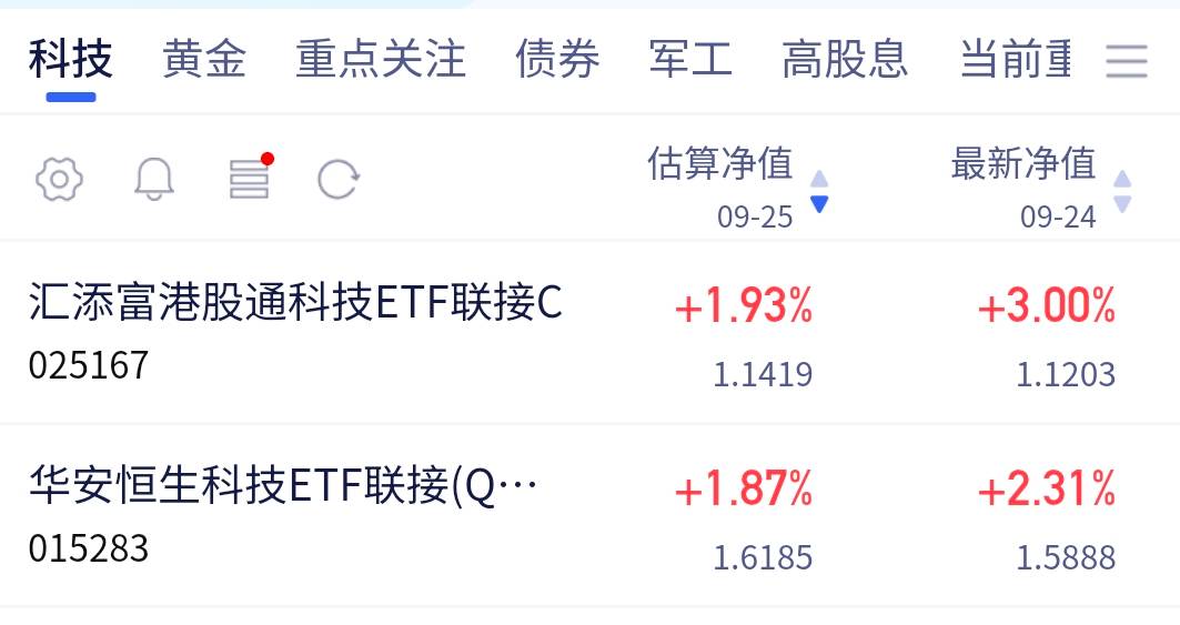 我观察仓中的$汇添富恒生港股通中国科技ETF联接C$ (025167 )这个基是100%聚焦纯科技,重点关注与TMT行业,其持仓中的阿里、腾讯、小米占比超40%,还不含医药、家电、汽车,所以这个基比恒生科技含量的纯度更高,聚焦性更强,我发现它跟踪指数今年以来上涨了41%,远高于恒生科技。
