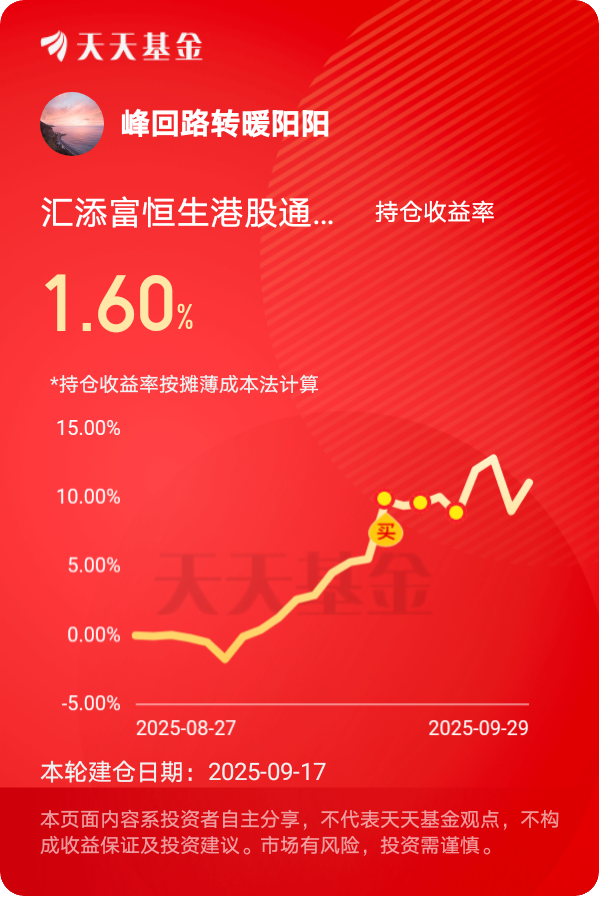 $汇添富恒生港股通中国科技ETF联接C$ 100%科技属性,比恒生科技更纯,更有锐度,港股补涨动力更大,买港股这只业绩还是不错的。