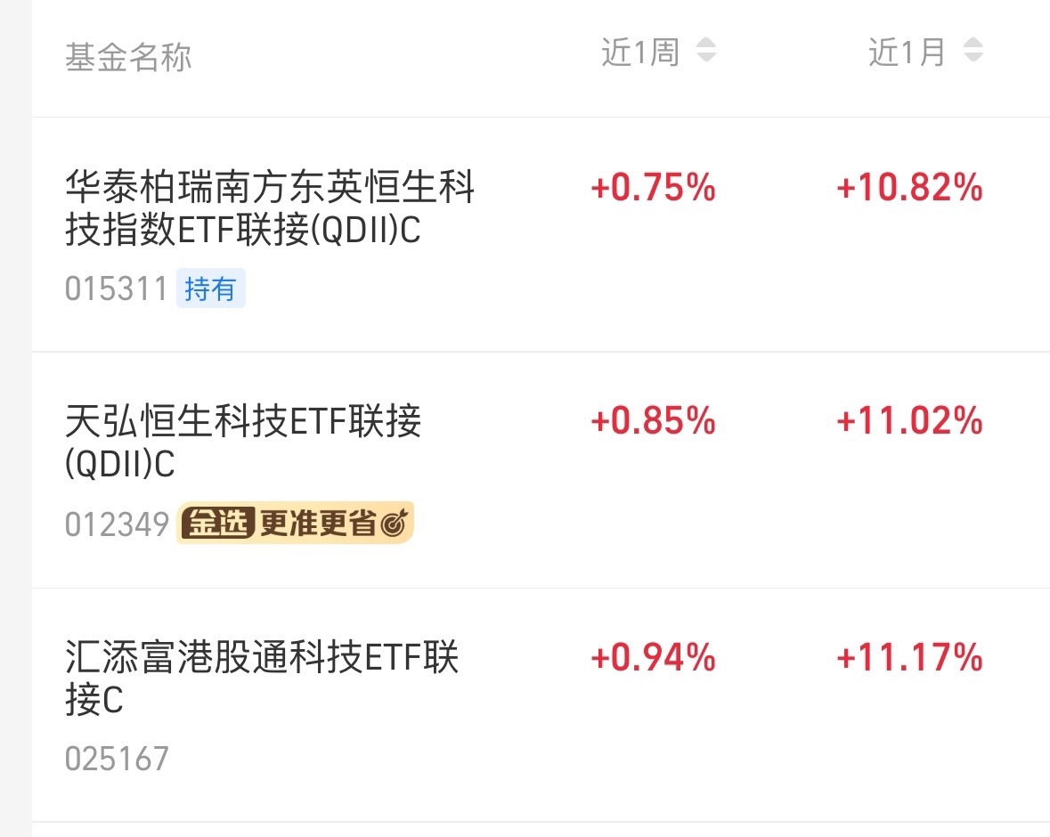我的$汇添富恒生港股通中国科技ETF联接C$ 业绩做的挺靠谱,打算节前布局一点,期待节后港股科技赛道爆发。这只基紧紧跟着恒生港股通中国科技指数,100%纯科技方向。比恒生科技、人工智能那些指数走的稳多了