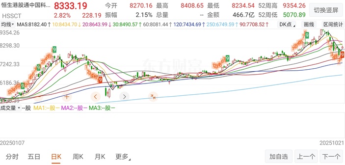 十月以来A股港股的整个大科技线都经历了一波快速回调。回调一原因主要有两个,一是前期积累了较大的涨幅,短期资金确实有落袋需求。二是中美贸易博弈突然升温,空头情绪高涨。展望后市,随着美年内仍有降息预期,中美贸易博弈也传来谈判的消息,港股科技有望止跌反弹,后市行情一旦启动,上涨空间非常大。别人恐惧时我贪婪,这绝对不是嘴巴说说,而是要真的敢于行动。我现在就等它给我低吸进场机会,哪天它回调,我就会果断建仓它。