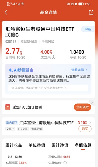 我近期持续关注港股科技方向的机会,早已将$汇添富恒生港股通中国科技ETF联接C(OTCFUND|025167)$加入了自选,目前正在积极寻找机会建仓它。这支基金跟踪恒生港股通科技指数(HSSCT)。该指数聚焦TMT行业,不含医药、家电、汽车,前十大重仓股中含阿里、腾讯、美团、中芯国际、快手等,AI属性更高,科技属性更纯。本指数今年以来涨近50%,远超恒生科技、人工智能、机器人、云计算等科技赛道主题指数。