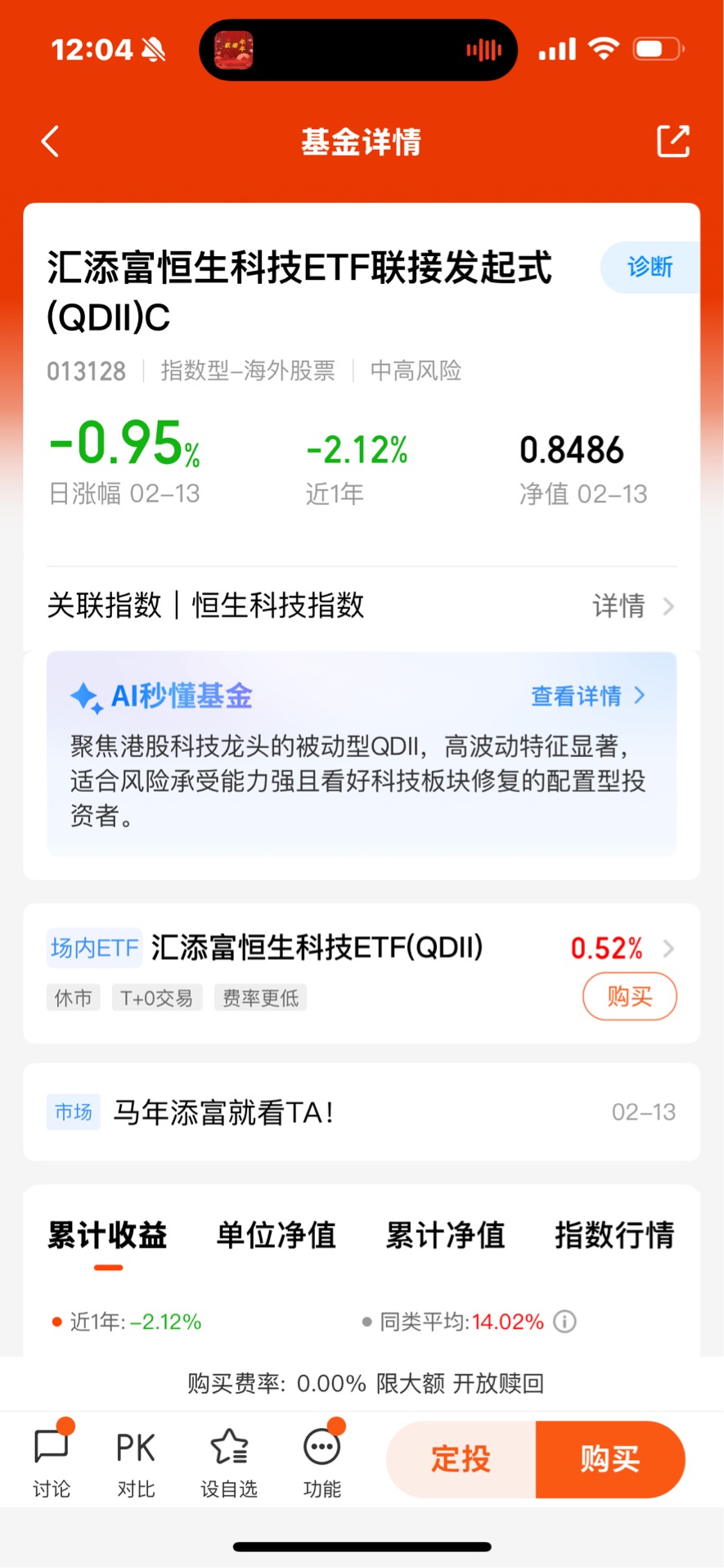 $汇添富恒生科技ETF联接发起式(QDII)C$