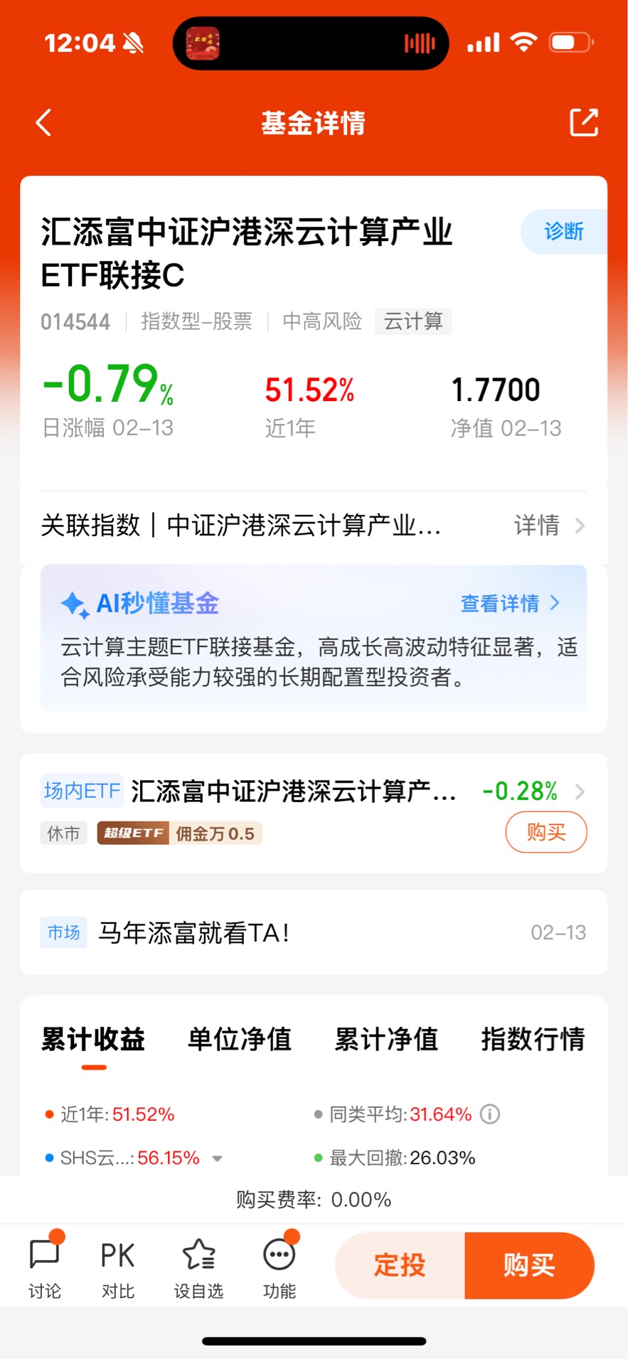 $汇添富中证沪港深云计算产业ETF联接C$