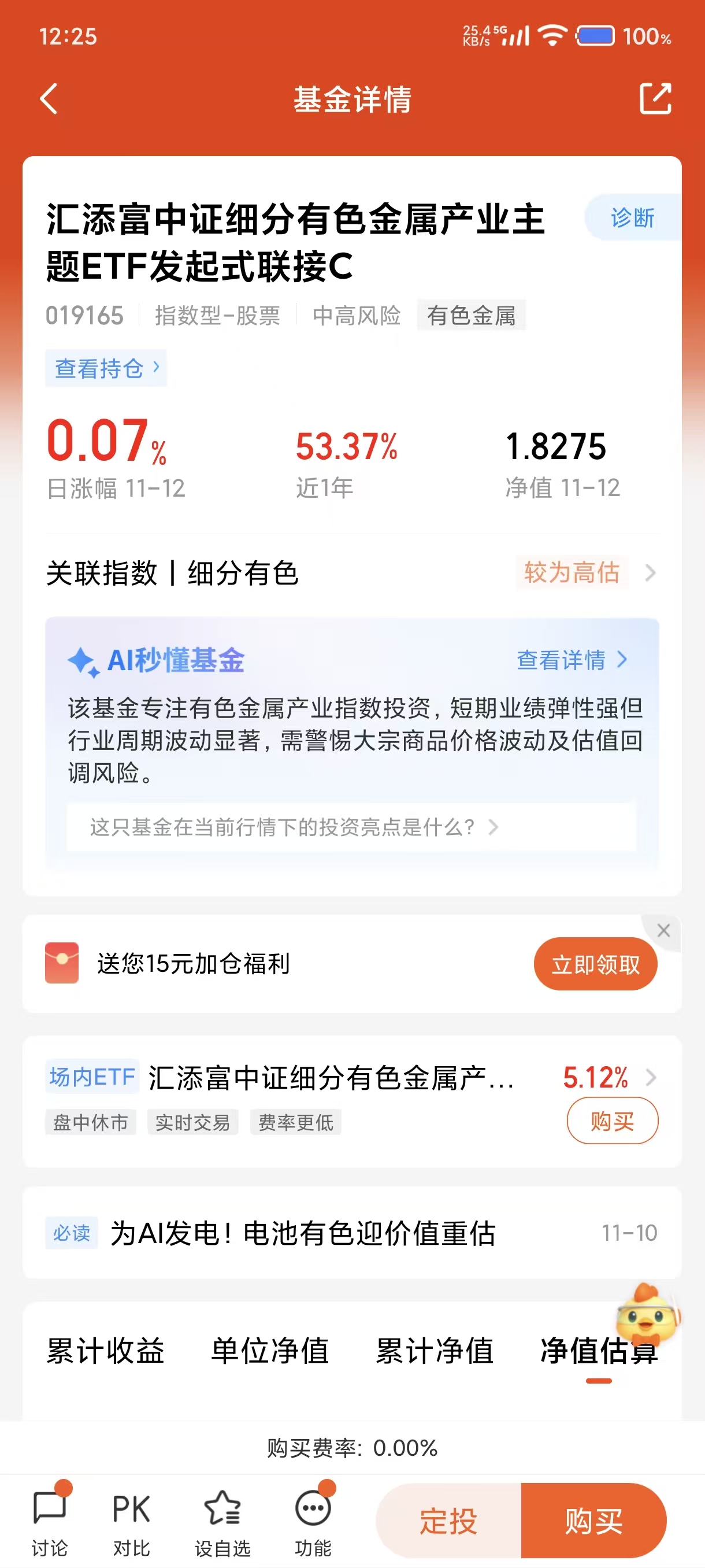值得一提的是汇添富中证细分有色金属产业主题ETF联接C(019165 )跟踪中证细分有色金属产业主题指数其中含铜量30%,黄金含量14%,显著高于同类有色指数。基金前十大成分股包括紫金矿业、北方稀土、洛阳钼业、华友钴业等,涵盖铜、稀土、锂、铝等核心领域。这只基金近1周业绩已经逐渐超过同类产品了我长期看好这只基金表现。$汇添富中证细分有色金属产业主题ETF发起式联接C(OTCFUND|019165)$