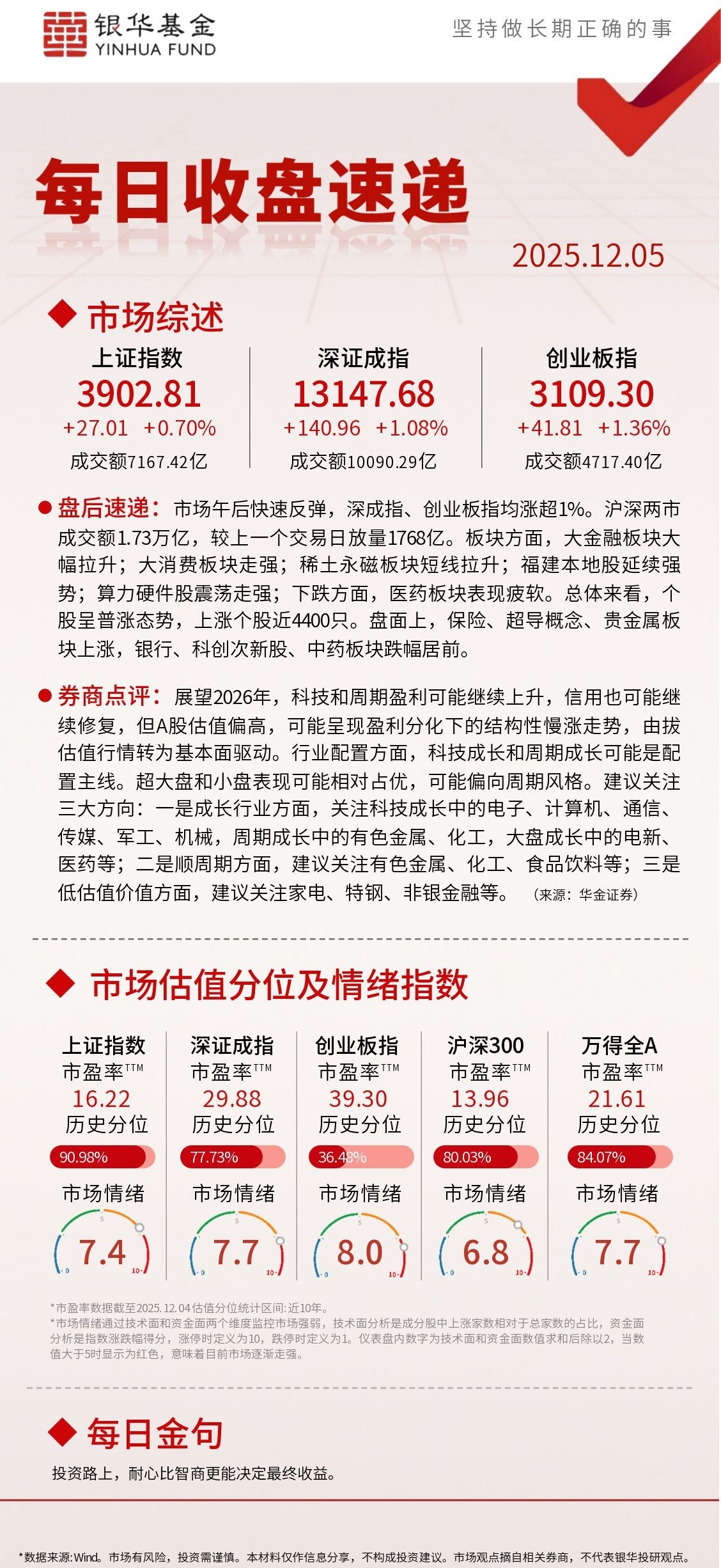 每日收盘速递 | 2025.12.5 沪指重回3900点,上涨个股近4400只