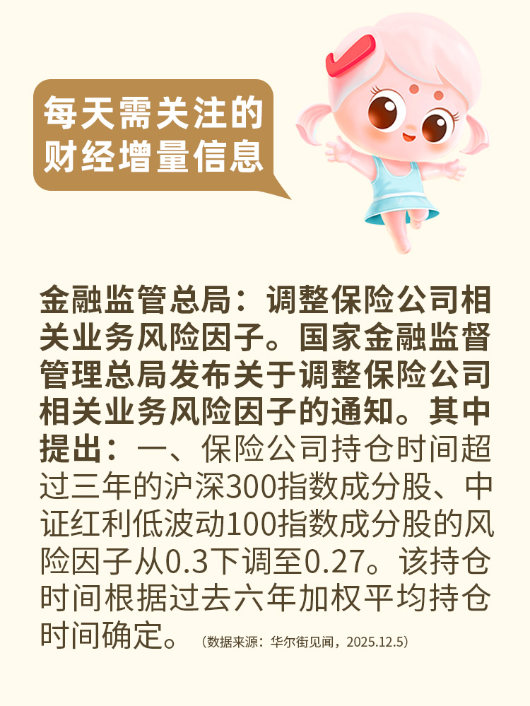 【每天需关注的财经增量信息】金融监管总局:调整保险公司相关业务风险因子。