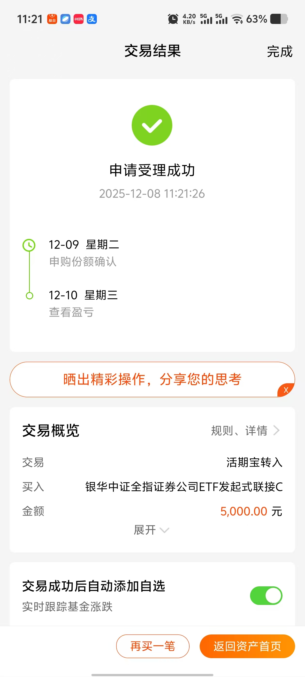 具体策略: 猴哥(小猴论市)个人午后买入证券(025194)、纳指(006479)主题性基金符合后续加仓交易机会。(目前适合继续低吸潜伏,耐心等待)。此分享纯属义务劳动,不对任何人负责。买卖自由,对自己要负责! 朋友帮猴哥点点赞或者留言666表示支持!