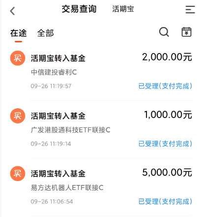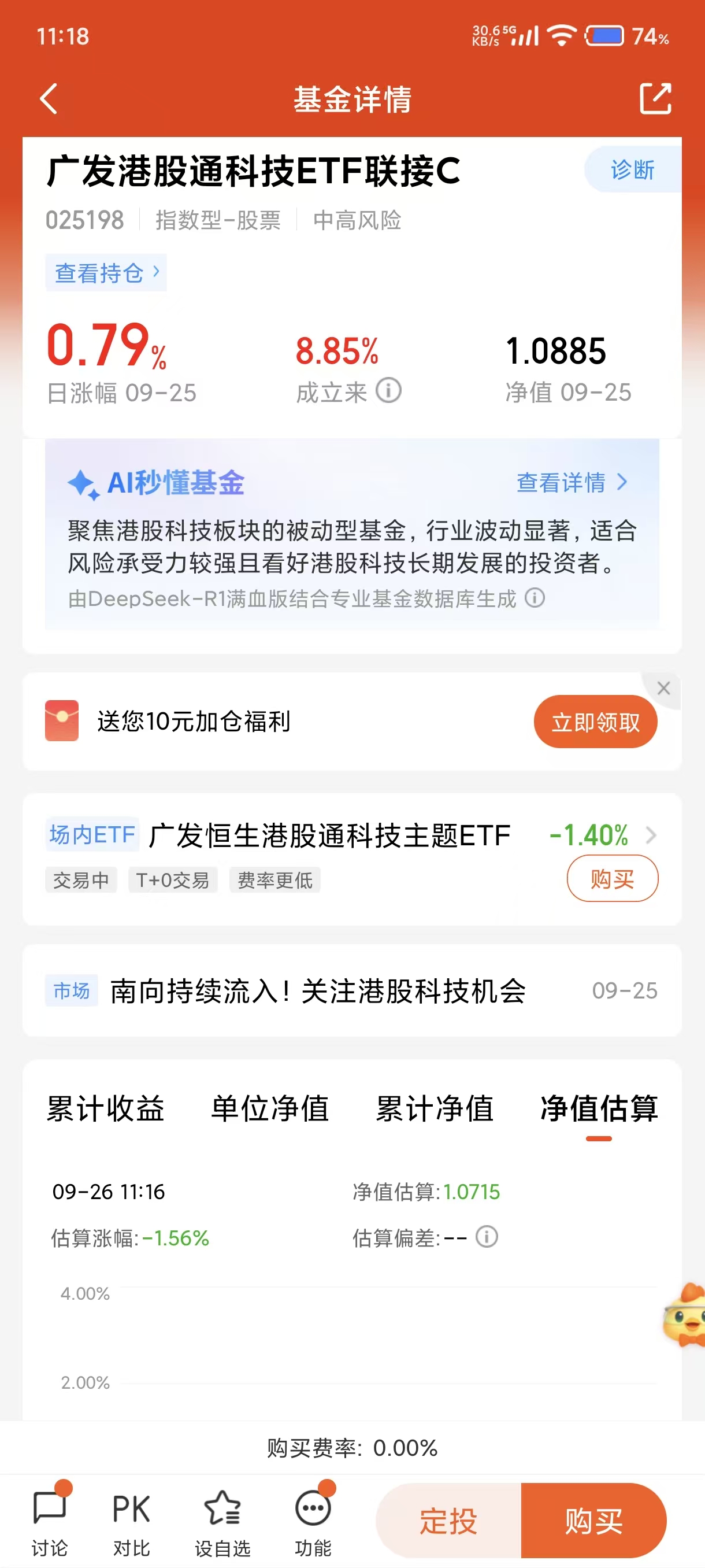 值得一提的是广发港股通科技ETF联接C(025198)是目前港股科技相关指数中阿里含量最高的产品,借道这只基金产品更好把握投资机会。今天我选择再次上车1000元,长期看好这只基金的表现。$广发港股通科技ETF联接C(OTCFUND|025198)$