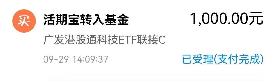 1、$广发港股通科技ETF联接C(OTCFUND|025198)$,买入1000元