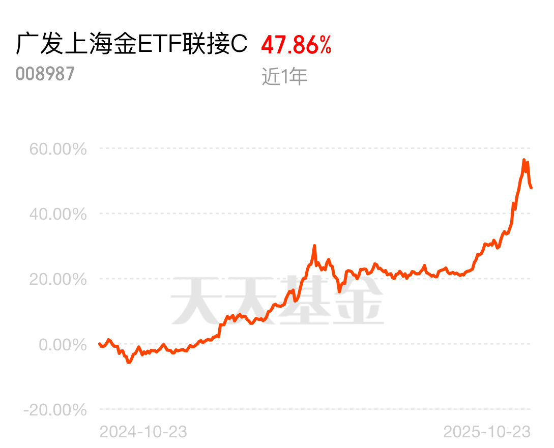 与其焦虑这那的不如赶紧抓住低价机会入场,$广发上海金ETF联接C$1年能涨50个