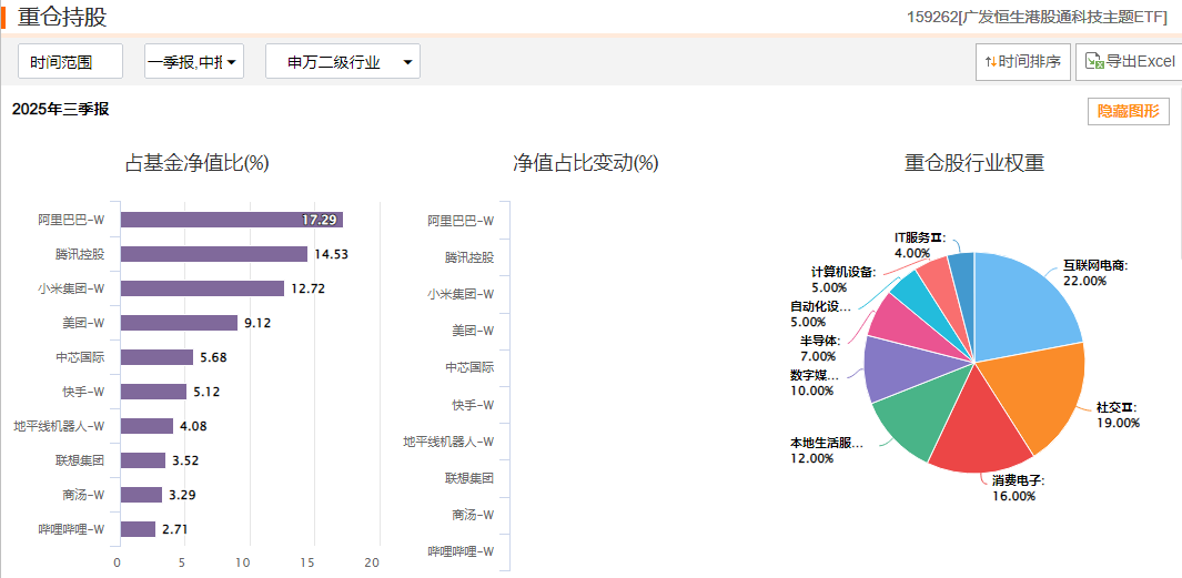 这只基金跟踪的恒生港股通科技主题指数,在选股逻辑上极具优势,它从恒生综合指数成分股中筛选具备港股通资格的科技标的,相当于从港股“大盘股池”里挑龙头,基础市值有保障。与其他泛科技指数不同,该指数聚焦资讯科技业全行业,再加上互动媒体、线上零售等核心细分领域,不掺杂医药生物等非核心板块,科技属性更纯粹。30只成分股均为大市值龙头,且设置了合理的缓冲区规则,避免频繁换股带来的波动,既能精准捕捉科技板块的增长红利,又能有效降低单一标的的风险,这种“聚焦核心 稳扎稳打”的指数设计,非常适合长期布局。