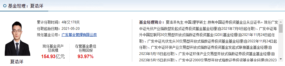 这只基金的基金经理夏浩洋,绝对是指数投资领域的“老兵”,拥有多年跨境指数基金管理经验。他不仅现任广发中证海外中国互联网30ETF、广发中证港股通互联网指数基金等多只相关产品的基金经理,还管理过光伏、环保、半导体等多个领域的指数基金,对科技板块的行业逻辑和指数跟踪技巧有着深刻理解。从历史业绩来看,他管理的指数基金跟踪误差控制出色,比如广发中证2000ETF的夏普比率表现亮眼,能在控制风险的前提下为投资者获取超额收益,这种专业能力让基金能够紧密跟踪标的指数,避免出现大幅偏离,确保投资者能精准分享港股科技板块的增长红利。