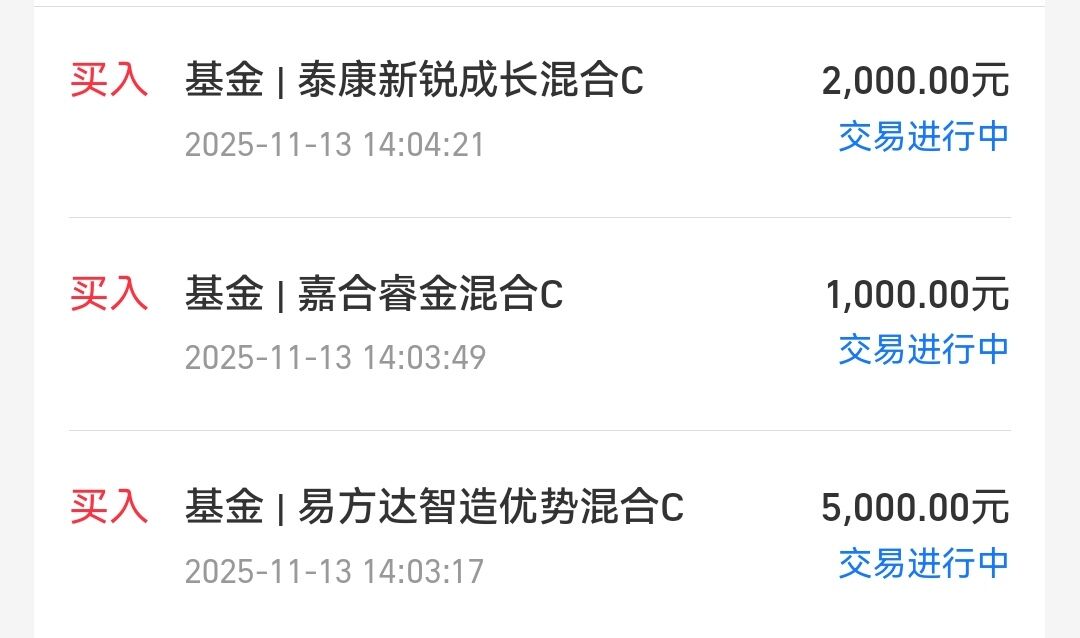 我今天加仓了港股通科技、中信建投睿利C、交银优择回报、万家高端装备量化、泰康新锐成长、嘉合睿金混合C、易方达智造优势,其它基金继续持有待涨。