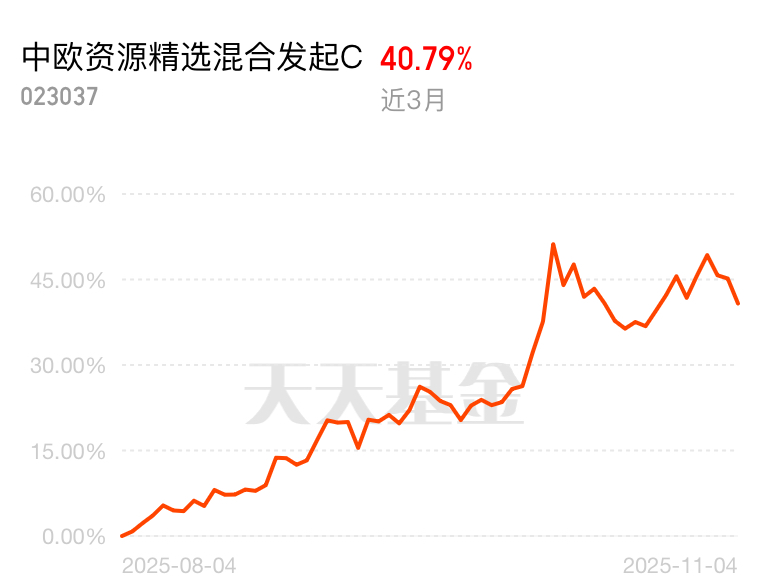 之前看科技股跌了就急着加仓,以为能抄底,结果这周账户天天飘绿,心情差到极点。还好中欧资源精选混合C给力,近3个月涨40.79%,今天还涨了1.5%,它抓着稀缺资源方向,基金经理三季度又加仓,逻辑硬得很。
