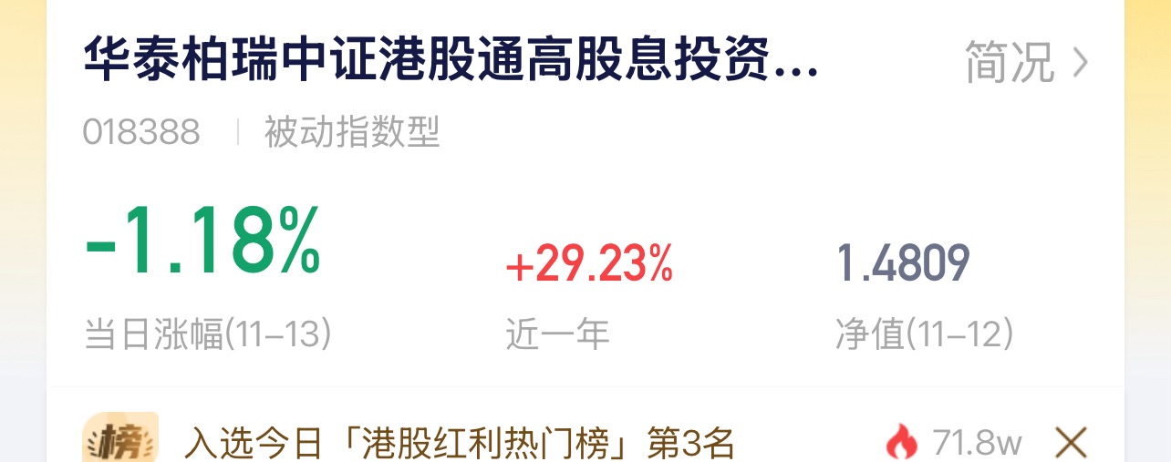 今年收益还行,但最后几个月不想大动了?港股红利板块近期走强,华泰柏瑞港股红利重点