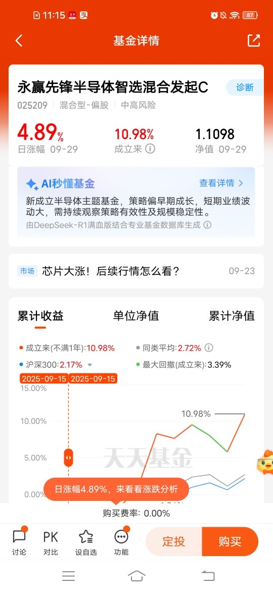 $永赢先锋半导体智选混合发起C$目前布局也是时机,刚成立关注芯片,弹性高!昨天大