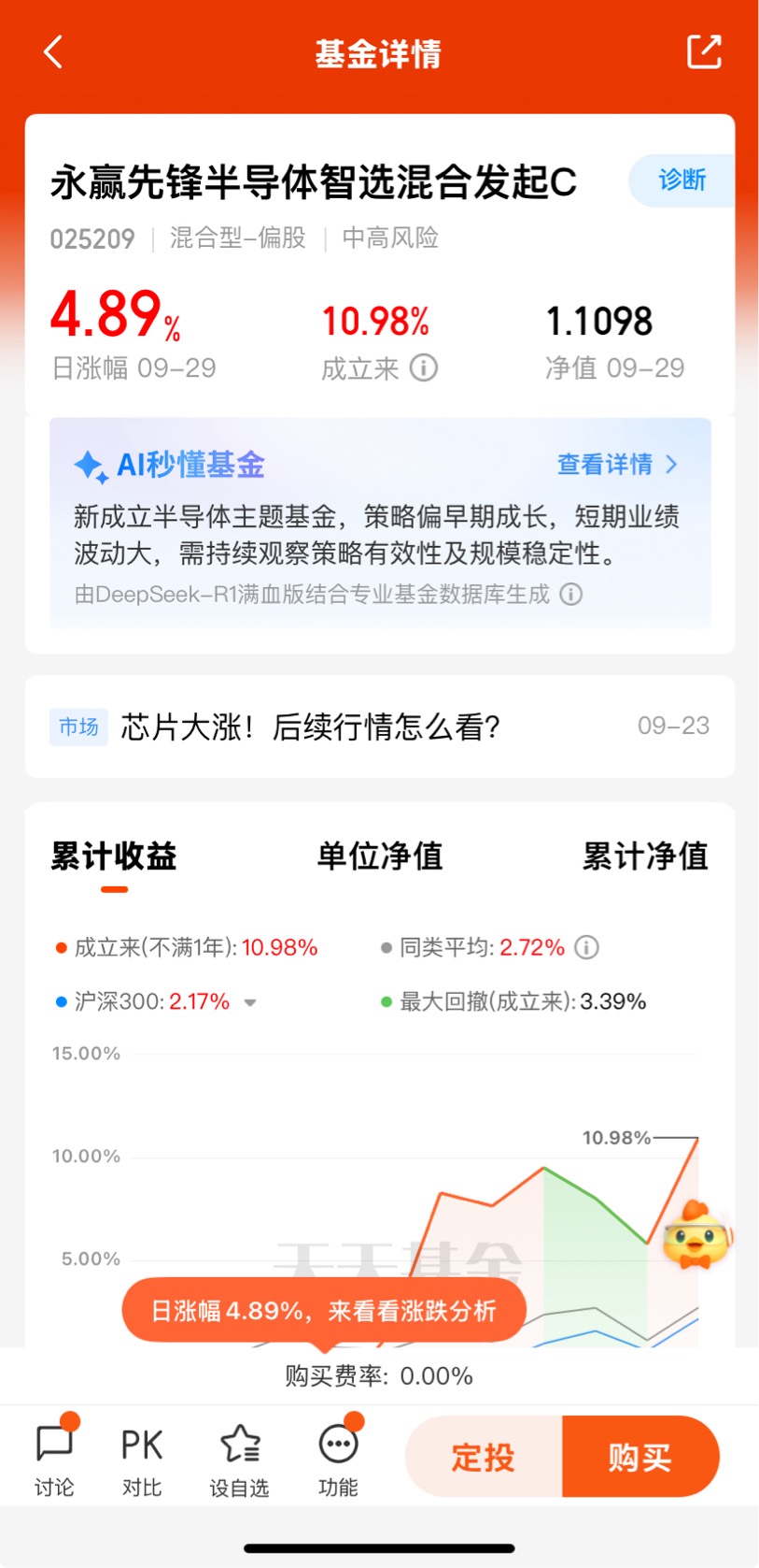 #DeepSeek、寒武纪同步发布引关注# AI算力芯片需求持续增长,国产GPU、CPU及算力供应链企业有望受益;AI应用落地将带动消费电子换机潮,拓展半导体市场空间。$永赢先锋半导体智选混合发起C$ 昨天大涨4.89%,基金成立仅十多天涨幅10.98%,业绩优秀;国内半导体设备国产化率普遍较低(如光刻机小于3%、检测设备不足5%),国产替代进程加速,政策支持与市场需求推动企业技术突破。