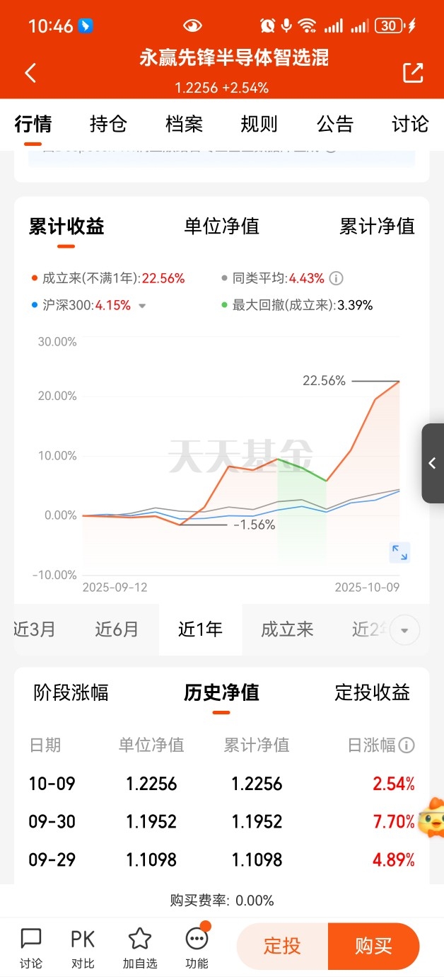 $永赢先锋半导体智选混合发起C$昨天喜迎10月开门红,大涨+2.54%,已经连续