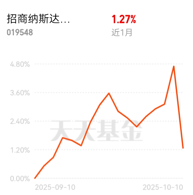 美股今天波动温和,高位震荡后收涨,科技股是主力,买盘活跃,趋势好。手里有钱的建议加仓,它近1个月1.27%的收益,$招商纳斯达克100ETF发起式联接(QDII)C$