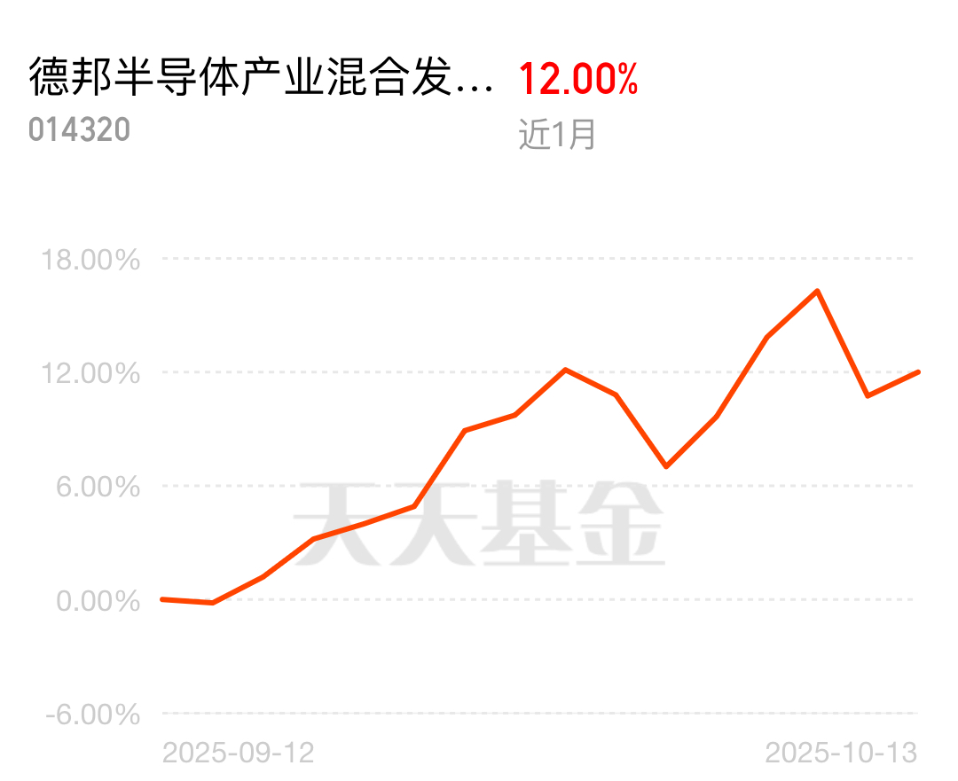 半导体板块跌了几天,资金开始回流,它弹性大,反弹起来很猛。德邦半导体产业混合C近1个月12.00%,现在加仓,收益稳了。
