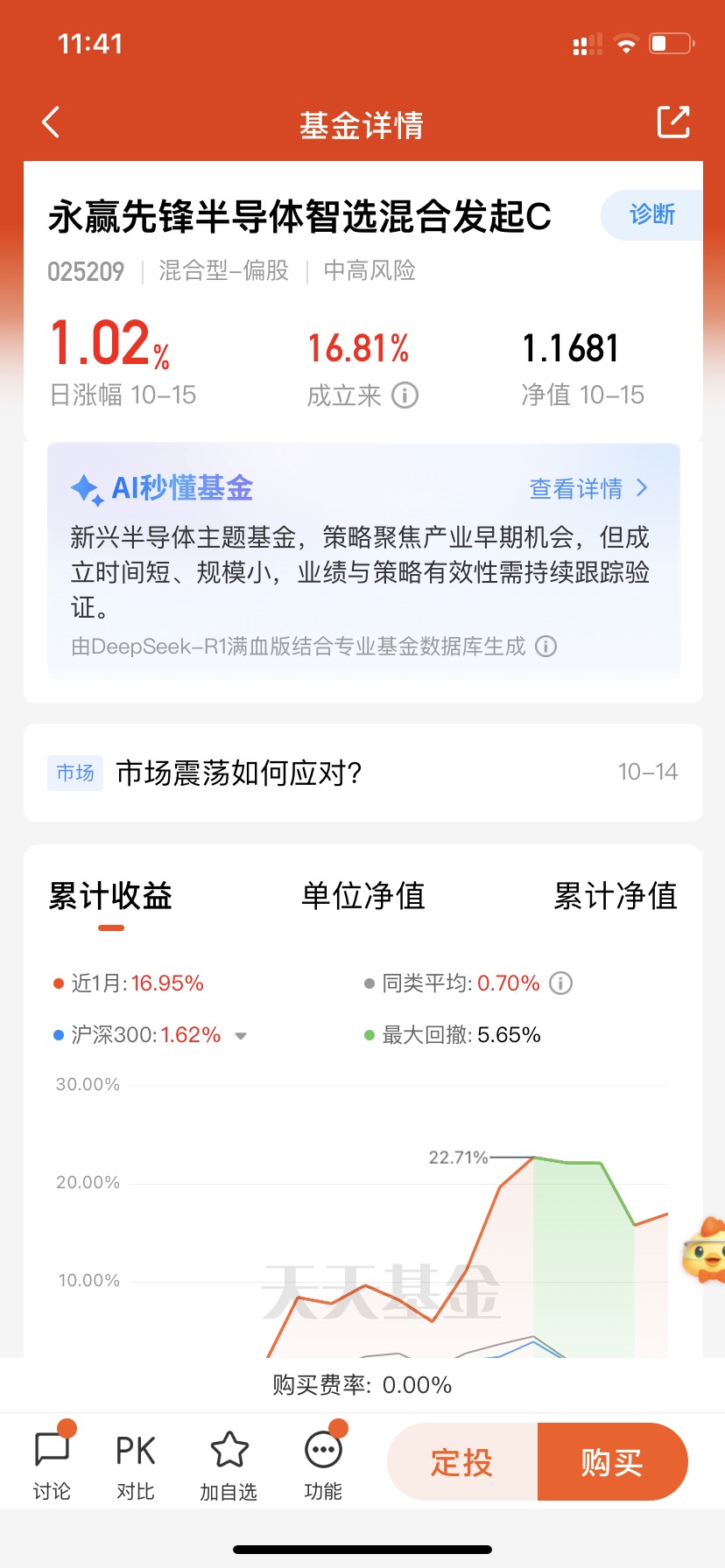 $永赢先锋半导体智选混合发起C$ 昨天涨了1.02%,这里是一只聚焦半导体产业的成长型基金,主要关注下游存储芯片,景气度很高,成长空间广阔,受益于AI行业需求爆发和供需错配,成立时间短,近一个月16.95%涨幅,同类平均0.70%涨幅,业绩表现还是很优秀的了,值得继续期待了!#存储芯片掀涨价潮!行业迎超级周期#