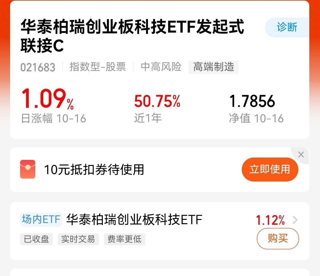 我的定投神器!$华泰柏瑞创业板科技ETF发起式联接C$今天又稳住了,涨1.09%