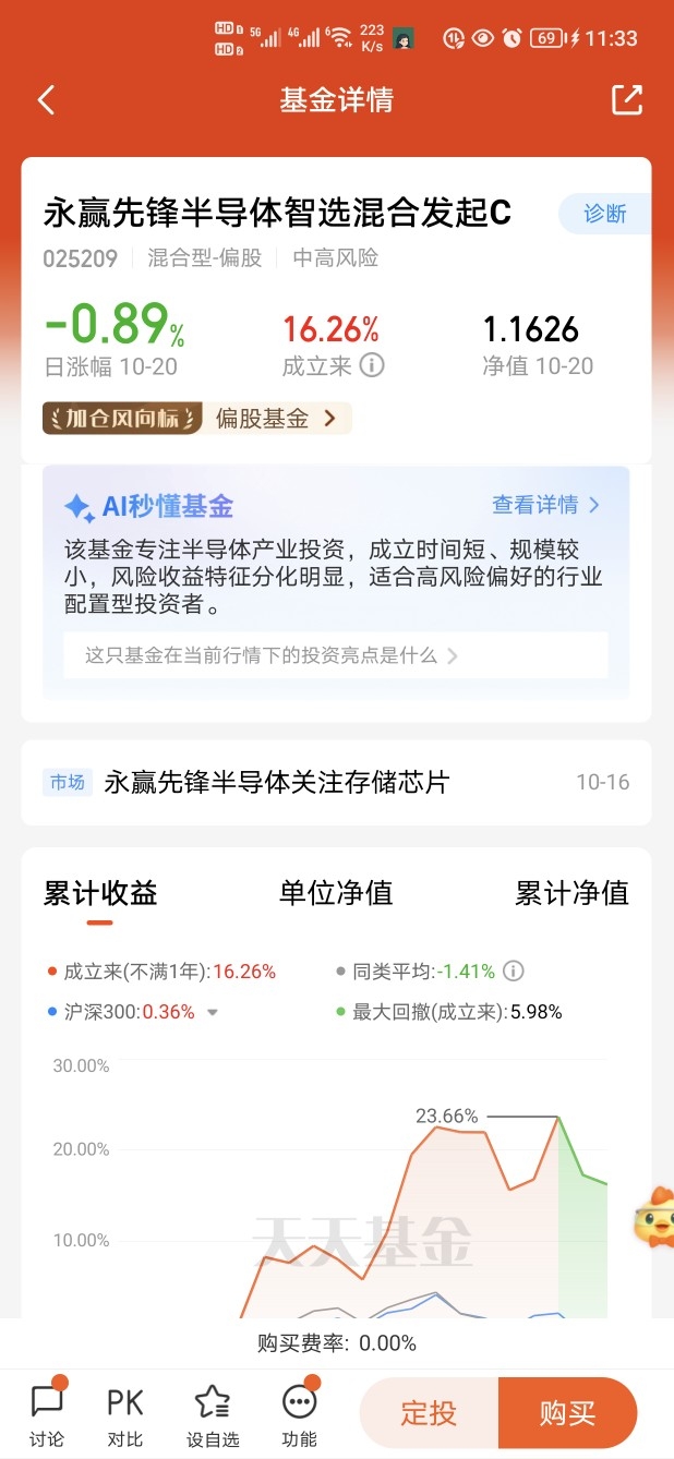 这两天趁着调整也是低位跟进的好机会,$永赢先锋半导体智选混合发起C$最近一个月的