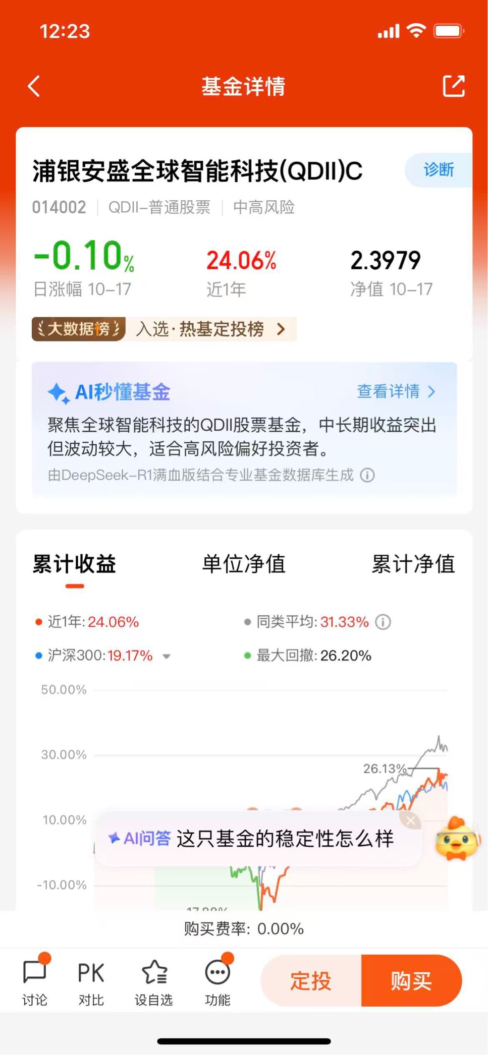 国内科技股四季度结构性震荡整理,想要分散风险可以配置下$浦银安盛全球智能科技(QDII)C$ ,定投参与也很稳
