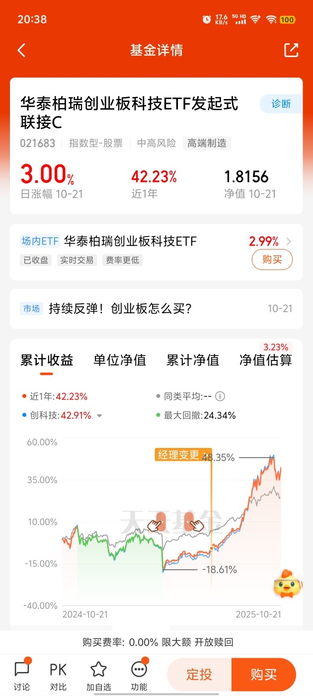 今天创业板这波行情,简直是给基民发红包啊!要是你也想在创业板里捞点科技赛道的好处,华泰柏瑞的创业板科技基金必须安排上~科技行业发展势头猛,创业板的弹性又能放大收益,今天的行情就是最好的说明~别等行情跑远了才后悔,现在看看这只基金,跟上创业板科技的步伐,赚钱不就更有盼头了嘛!#指数操盘手集结令# $华泰柏瑞创业板科技ETF发起式联接C$