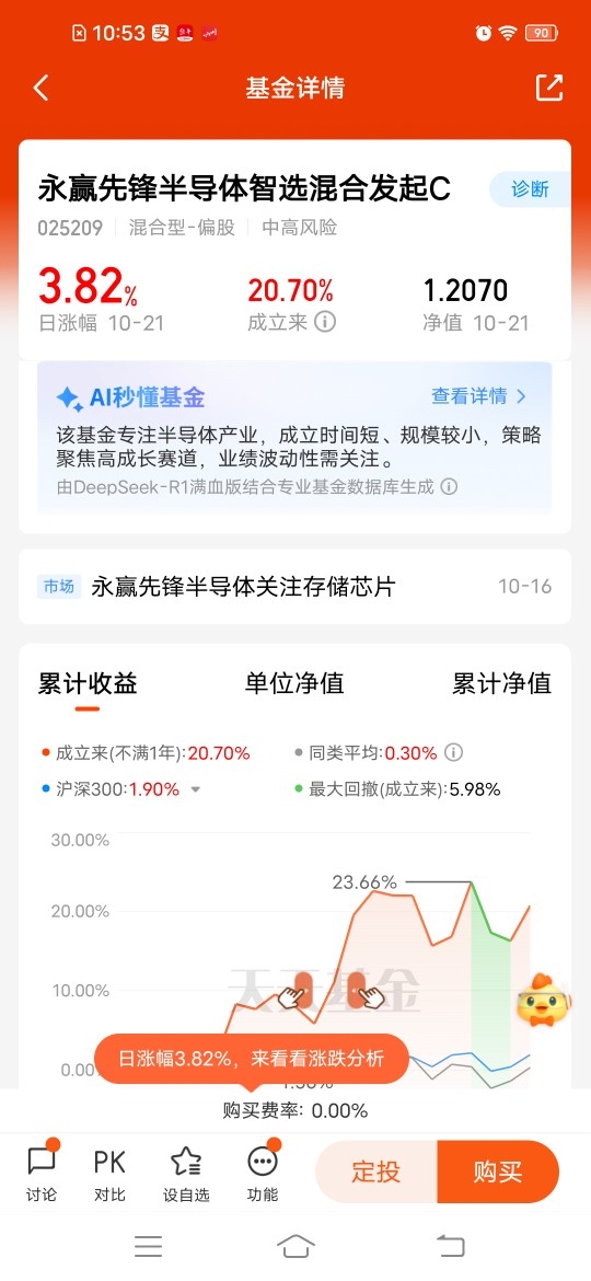 $永赢先锋半导体智选混合发起C$ 目前也是布局时机,弹性十足,昨天涨幅3.82%,刚成立关注芯片的,尤其是存储芯片,成立不久累积涨幅20.70%,存储芯片受益于全球AI的大发展,出现了供需错配,由于AI的需求还在高速增长中,其需求还是在高速增长的,更值得中长期布局。#深地经济成新风口!产业链如何投资 ?#