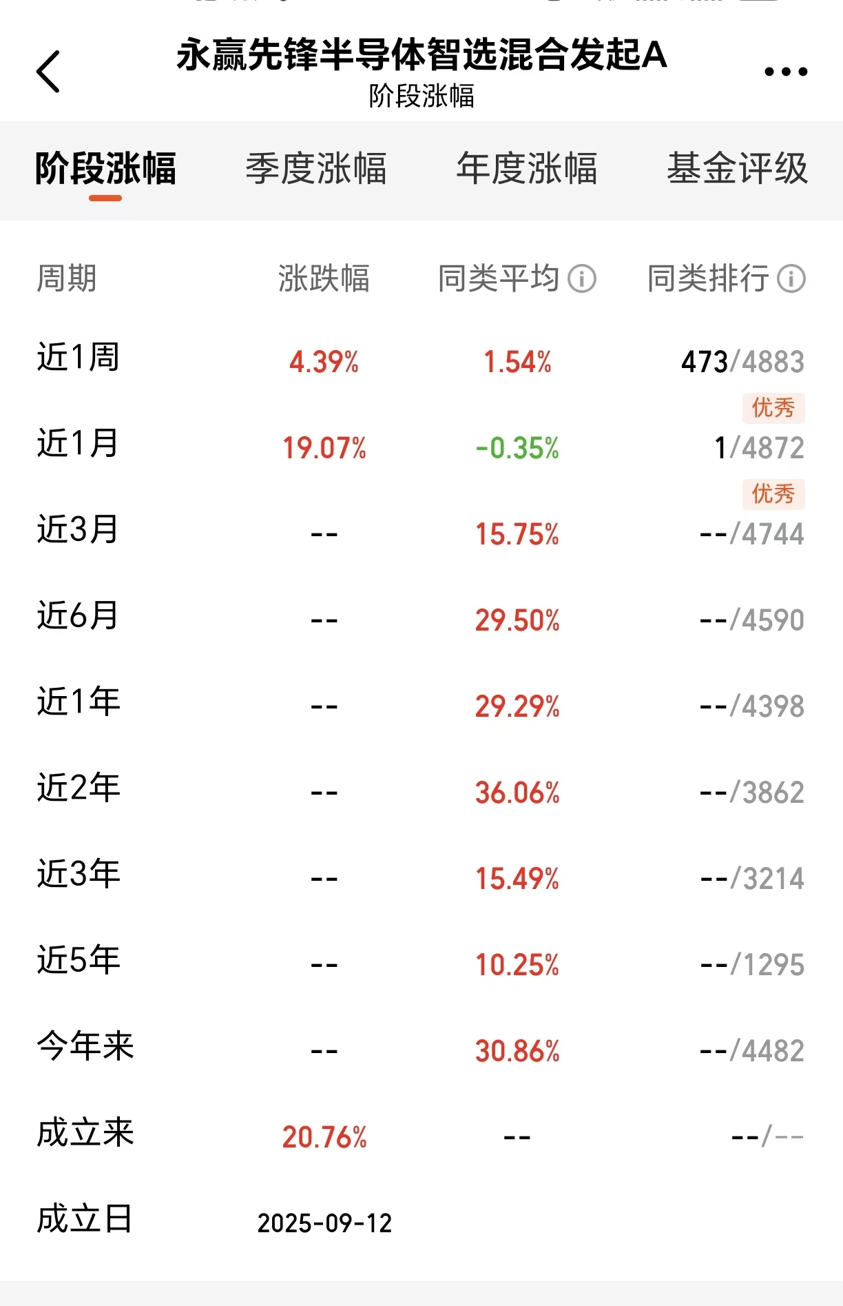 全球存储产业正经历从周期波动向技术驱动的历史性转型,涨价潮印证行业拐点。$永赢先锋半导体智选混合发起C$ (025209)深度锁定存储半导体赛道,以高弹性捕捉行业红利,成为投资者把握存力周期的核心工具,昨日大涨超3.8%,成立一个多月以来大涨超19%,同类第一。