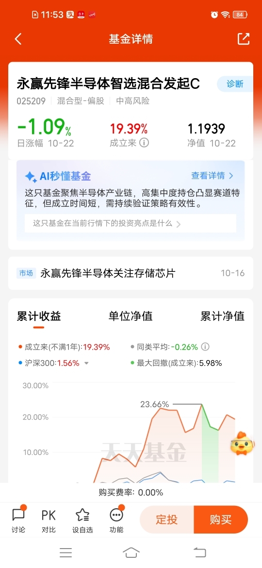 $永赢先锋半导体智选混合发起C$趁着波动,收集点筹码,近一周涨幅2.21%,刚成