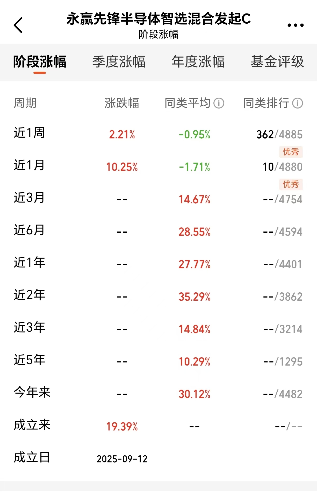 存储芯片市场正迎来热度攀升的上行周期,行情持续向好。行情火热之际,$永赢先锋半导体智选混合发起C$ (025209)脱颖而出,这支精准锁定存储芯片赛道的基金,近1周上涨2.221%,近1月上涨10.25%,自9月发行以来已取得19.39%的收益,作为新基后续潜力值得期待。