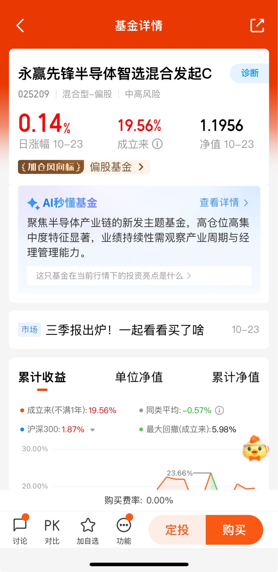 $永赢先锋半导体智选混合发起C$昨天涨回来0.14%,近一个月收11.06%,表