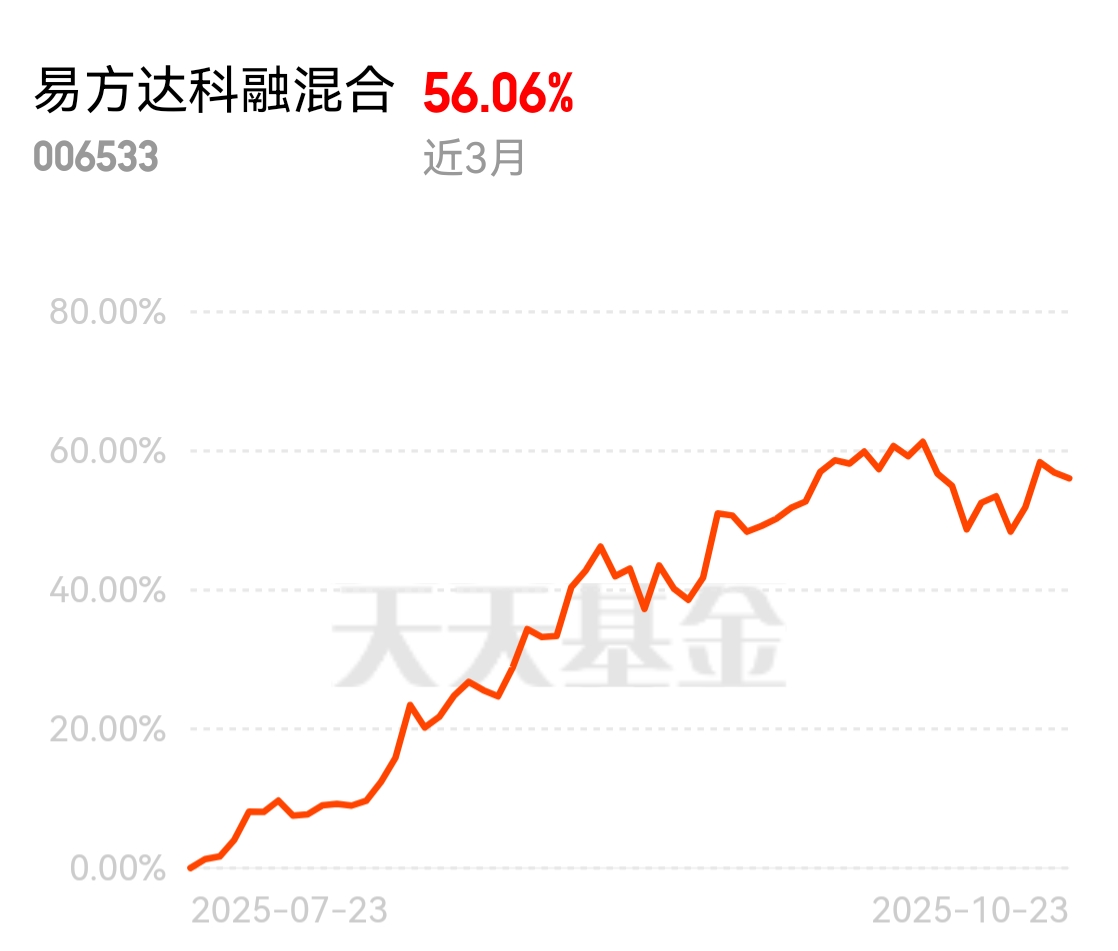 科技确实挺强的,走势一直都很牛,在科技浪潮与产业升级叠加的市场环境下,易方达科融混合表现也很出色,近三个月涨幅56.06%,近六个月涨幅98.15%,成长行情轮动快,本产品深度参与科技、新能源、军工轮动配置,夏普比率优秀,是成长里的均衡之选。