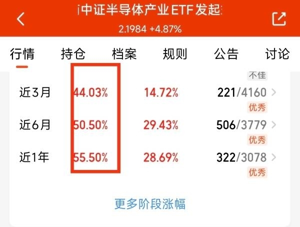 今天关注$招商中证半导体产业ETF发起式联接C$ 这只聚焦半导体的指数基金,紧密跟踪中证半导体指数。全面覆盖了半导体上下游产业链,周五又上涨了4.87%。爆发力的表现强。再次大幅跑赢了同类半导体指数基金。近一年涨幅55.5%。同类长期做到了优秀。今天的估值又上涨了2.15%。看来本轮半导体行情也才刚刚启动,我坚定看好在未来半导体上涨中的收益表现。在期待继续创新高