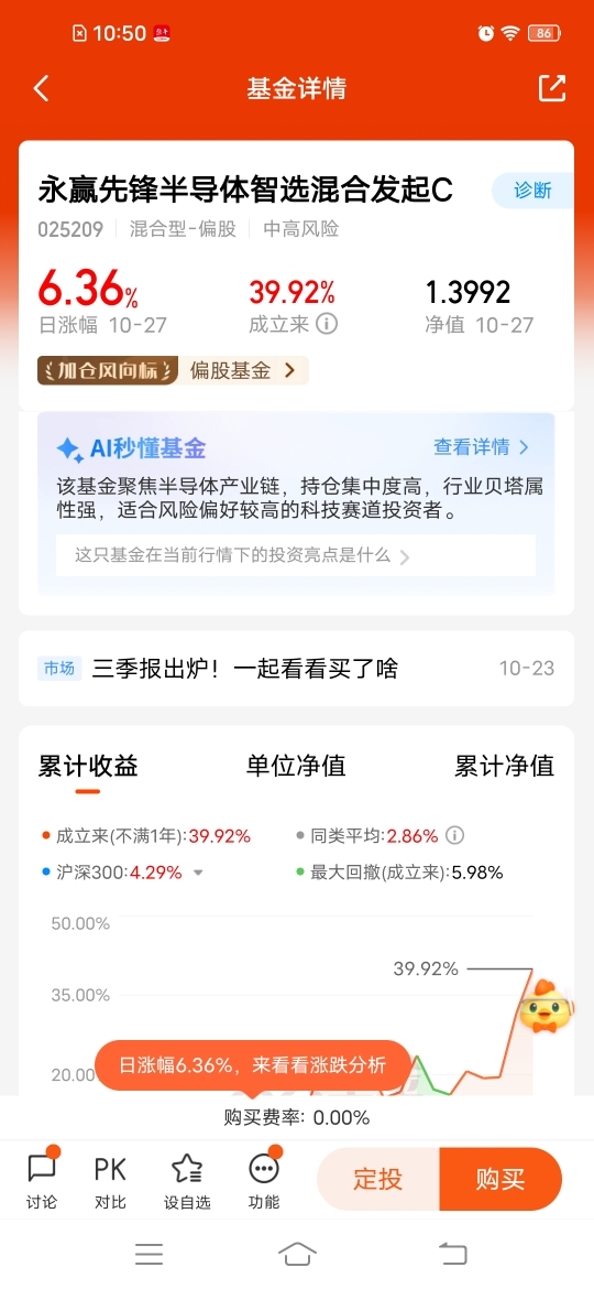 $永赢先锋半导体智选混合发起C$有筹码才有动力,超高弹性,昨天涨幅6.36%,近