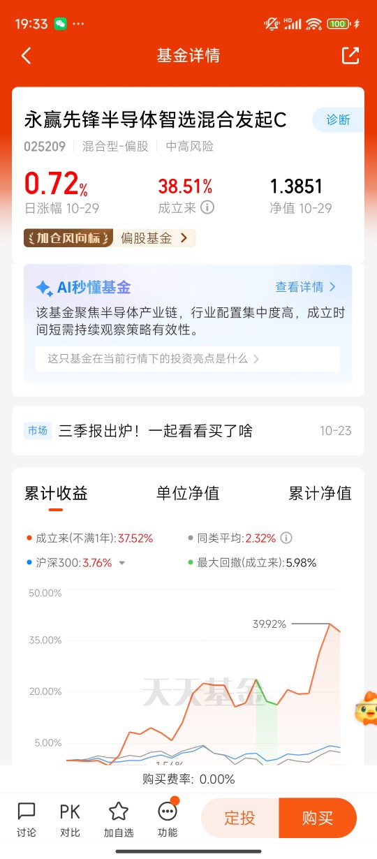 科技旺季迎来新高业绩。$永赢先锋半导体智选混合发起C$今晚拉涨0.72%。近一周