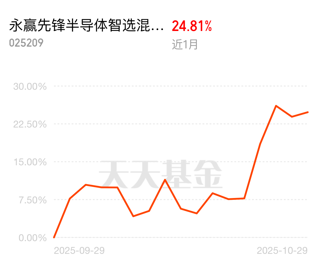 $永赢先锋半导体智选混合发起C$ 近一个月涨了24个多点,有点实力在呢