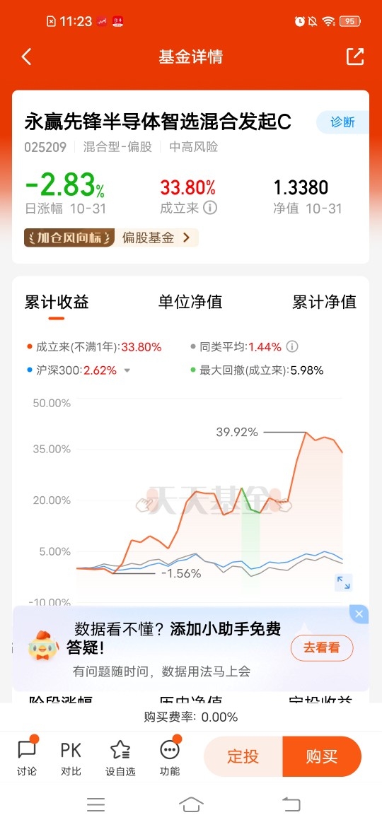 $永赢先锋半导体智选混合发起C$刚成立不久,整体估值偏低,也是布局机会,近一个涨