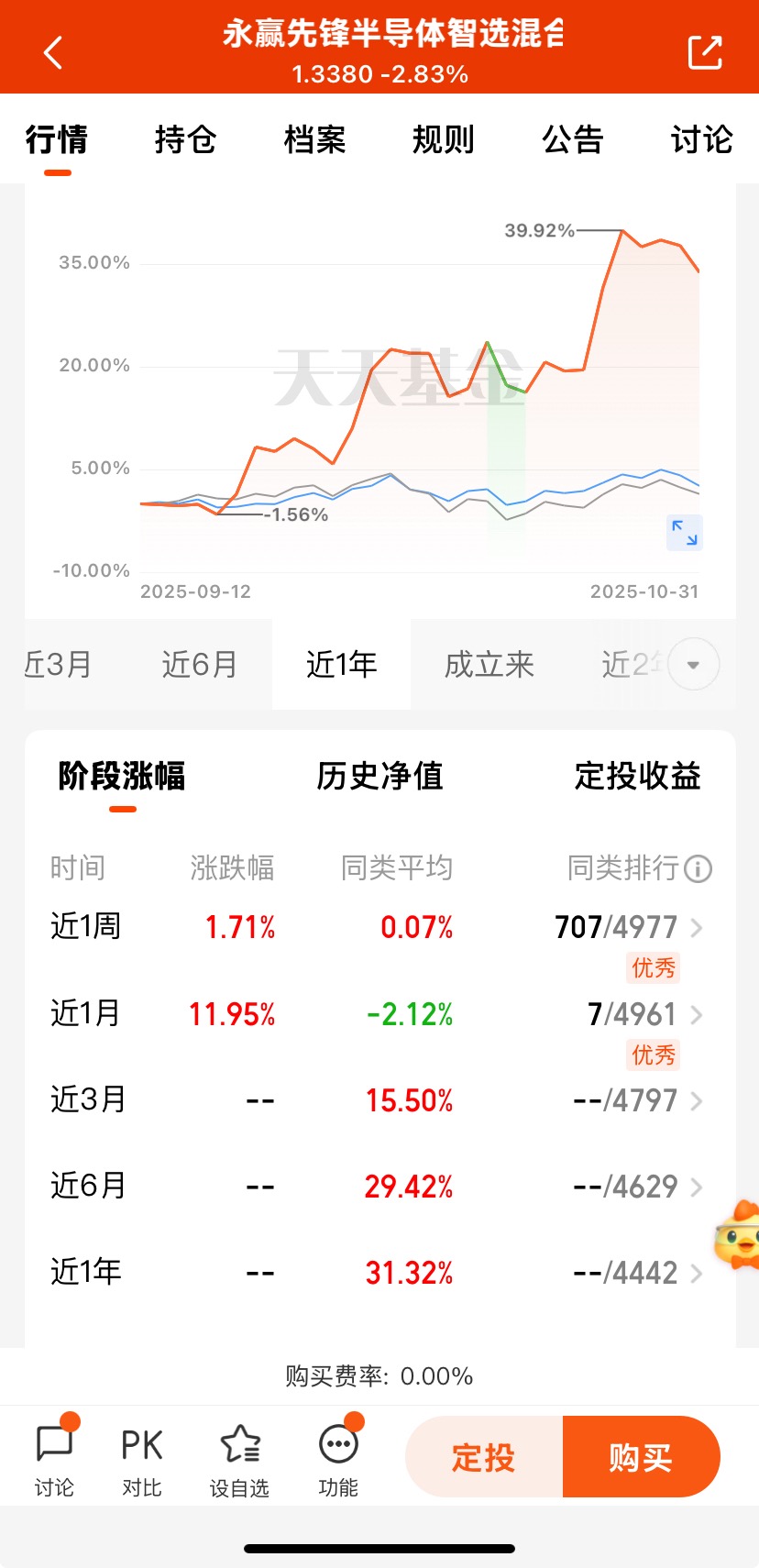 #11月基金投资策略# $永赢先锋半导体智选混合发起C$ 成立仅一个多月涨幅超过33个点,近一周收益1.71%,近一个月收益11.95%,各阶段的涨幅在同类中排名前十业绩优秀;该基金专注于存储芯片产业链投资,紧密跟踪行业动态,布局光刻机、先进制程等核心领域,受益于国产替代加速和政策支持。人工智能的快速发展对算力芯片需求旺盛,国产AI芯片企业如寒武纪、海光信息等业绩高增,AI服务器、智能驾驶等领域对半导体的需求持续增长,为板块带来新的增长动力。