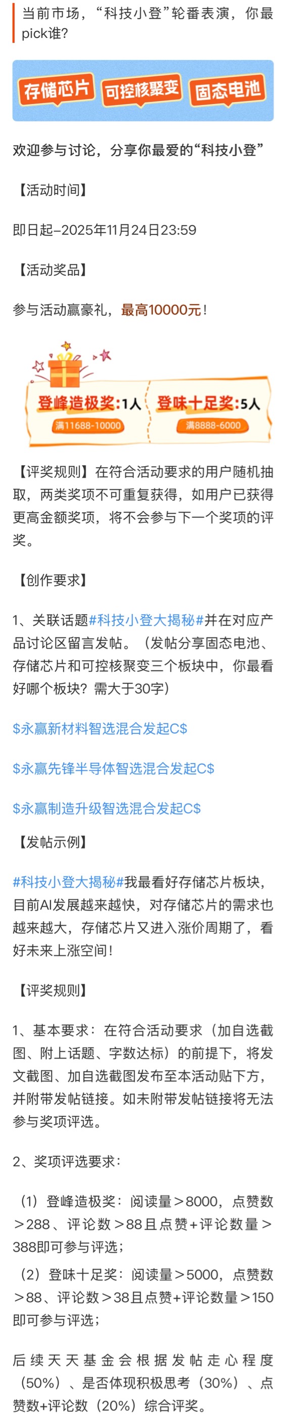 在天天基金平台讨论区,关联话题#科技小登大揭秘# 并在