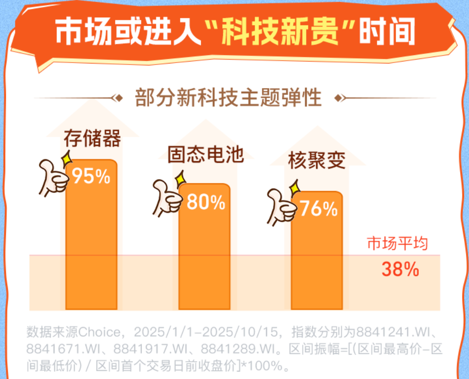 #科技小登大揭秘#最近A股市场热度不减,科技板块更是轮番表现,天天基金平台也趁势推出了“科技小登活动”。这是因为自从9月以来,中证科技指数已经上涨了3.7%,而其中的三大新兴科技概念更是狂飙突进:存储芯片上涨28.00%,固态电池上涨19.75%,可控核聚变上涨12.27%。这波“科技小登”的轮番表演,你更看好哪一个?