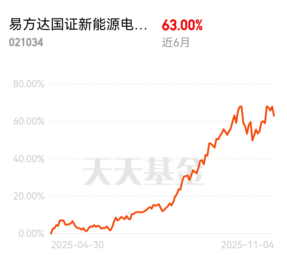 我比较看好这支$易方达国证新能源电池ETF联接发起式C$ ,跟踪国证新能源电池,今天也是快速拉升,科技资金回流较快,近3个月涨了43.41%,近半年收益63.00%,这几天也是跑赢科技板块了,而且龙头电池厂商三季报业绩兑现,叠加反内卷政策利好,板块还是有望延续补涨的!