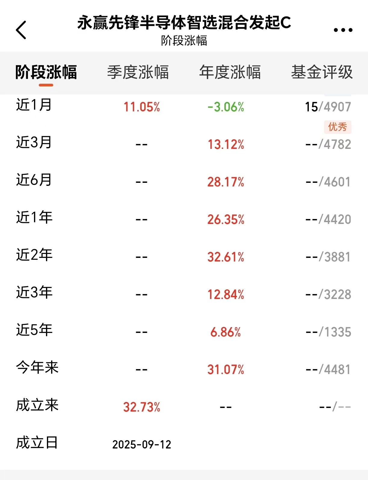 近期的行业新闻更是不断释放利好。国内某知名存储企业刚宣布,其自主研发的DDR5内存芯片通过了国际权威认证,正式进入全球主流供应链,这意味着国产存储芯片在高端市场终于站稳了脚跟。与此同时,国内存储芯片的市场份额也在快速提升,三季度已经突破了18%,同比增长了5个百分点。国际市场上,美光、铠侠等大厂也纷纷上调了存储芯片的报价,其中SSD硬盘价格环比上涨了12%,内存条价格上涨了8%。在这样的行情下,9月才发行的永赢先锋半导体智选混合发起C(025209)表现格外亮眼,作为一支新基金,它没有历史持仓的束缚,能精准切入存储芯片赛道,近1个月涨幅达到11.05%,成立以来的收益更是高达32.73%,这样的成绩在同期发行的基金里绝对算佼佼者。