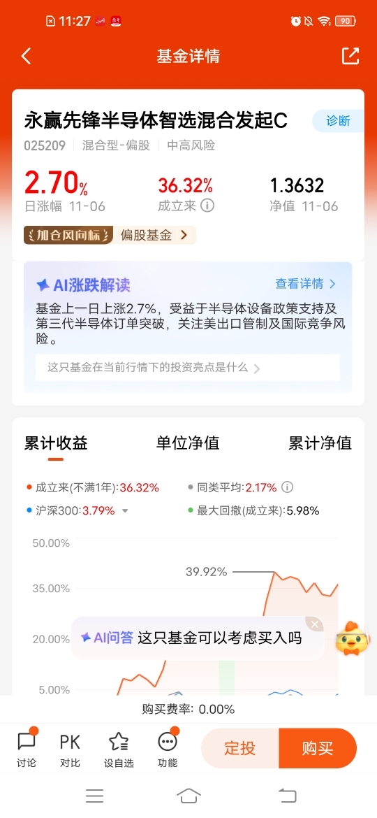 $永赢先锋半导体智选混合发起C$目前布局也是时机,反弹能力强,刚成立关注芯片的,